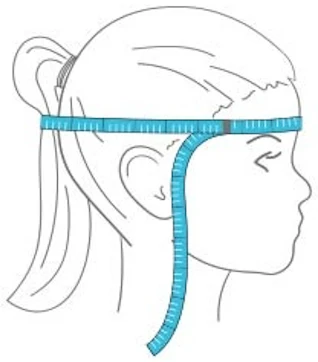 1. Matuokite tiesia juosta aplink galvą plačiausioje vietoje. Jei plaukai stori ar supinti – į tai atsižvelkite.